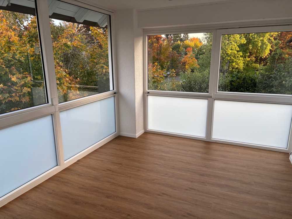 Die überdachte Süd‐Ost‐Loggia lässt sich durch wärmegedämmte Schiebefenster auch im Winter in einen gemütlichen Raum verwandeln.