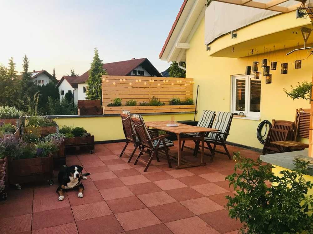 Diese großzügige 4-Zimmer-Terrassenwohnung, mit sehr großem Wohn-Esszimmer mit ca. 48 m². Ca. 138 m² Wohnfläche und abgeschlossener Terrasse befindet sich im 1. Obergeschoss eines grosszügigen, freistehenden Hauses mit 3 Wohnungen aus dem Jahr 1995, das zuletzt 2014 und 2020 modernisiert wurde. Das Gebäude steht in einem riesigen Grundstück in unverbaubarer Ortsrandlage mit einer wunderschönen, gepflegten Gartenanlage in einem Gebiet mit sehr offener Bebauung. Ein separates Gäste-WC und ein eigener gut zugänglicher Lagerraum im EG bieten zusätzlichen Komfort. Die Beheizung erfolgt über eine Fußbodenheizung, Es stehen 2 Stellplätze zur Verfügung. Die Wohnung ist ab dem 1.1.2026 (wahrscheilich schon ab Mitte Dezember 2025 verfügbar). Haustiere sind nach Absprache erlaubt.