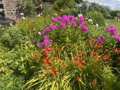 Umgeben ist das Haus von einem großen, etwas wilden, aber gemütlichen (gift-, kunstdünger-, roboter- und laubbläserfreien) Garten.