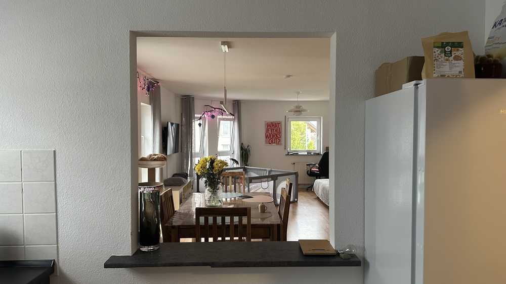 Die Böden sind in der Küche, im Flur und Bad gefliest, Laminat in Wohnräumen. Die Küche gehört zur Wohnung, alle Geräte sind top funktionsfähig.