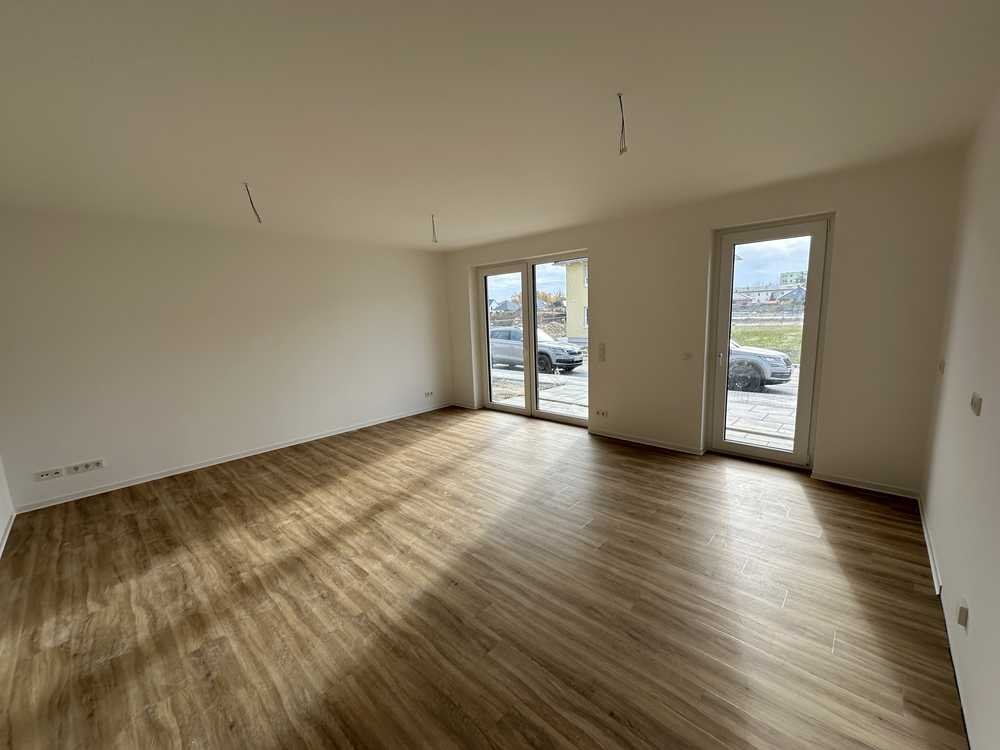 Diese moderne 3-Zimmerwohnung im EG überzeugt vor allem mit Ihrer Helligkeit und großzügigem Schnitt mitten im Grünen, umgeben von Obstwiesen und Feldern. Vom Flur aus gelangen Sie direkt in die großzügig geschnittene Wohnküche mit großem Wohnzimmerbereich und Terrasse mit Garten in Richtung Süden (Straßenblick).
