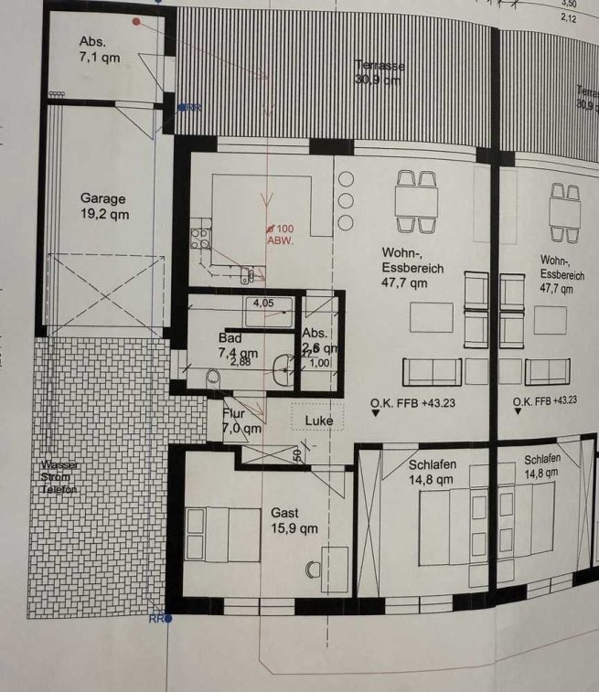 95 m' Wohnfläche auf einer Ebene (Erdgeschoss)