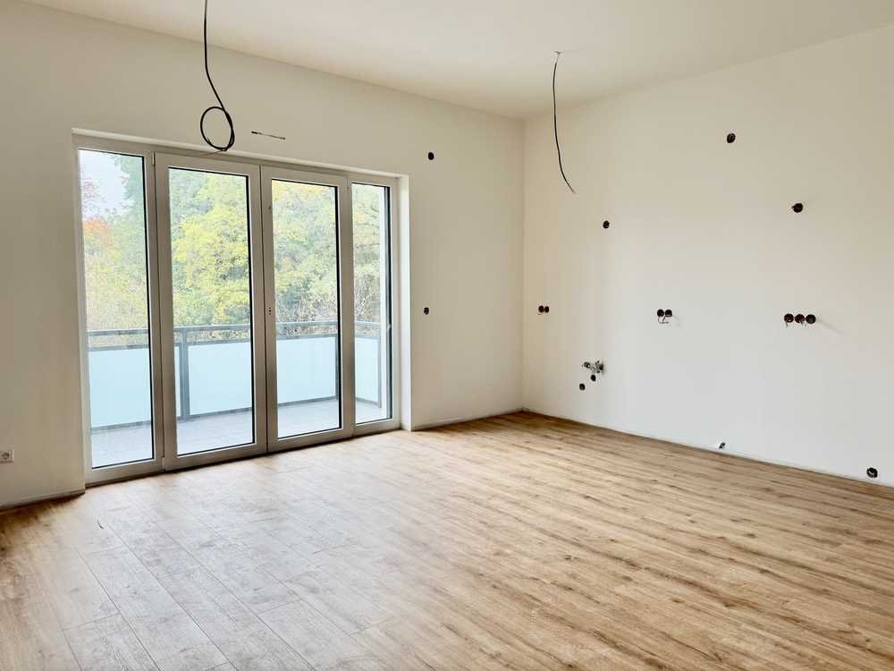 Mit einer Fläche von ca. 25 m² bildet der offene Wohn- und Ess- / Küchenbereich, inklusive einer hochwertigen Einbauküche (zzgl. € 50,- / mtl.), das Herzstück der Wohnung. Die Küche ist mit hochwertigen Markenobjekten ausgestattet und fügt sich perfekt in das moderne Raumkonzept ein. Hier werden gemeinsame Kochabende zum Erlebnis. Der angrenzende Balkon lädt mit einem Blick ins Grüne zum Entspannen ein – ob bei einem gemütlichen Frühstück oder einem entspannten Feierabend unter freiem Himmel.