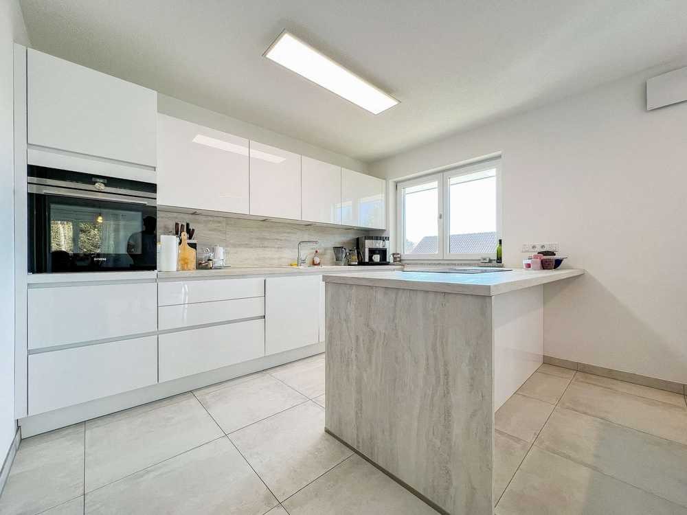 Die Küche ist mit einer großen Arbeitsfläche, einem Backofen, einem Cerankochfeld, einem Kühlschrank und einer Geschirrspülmaschine ausgestattet. Es wurde nur SIEMENS- und BORA-Geräte verbaut.