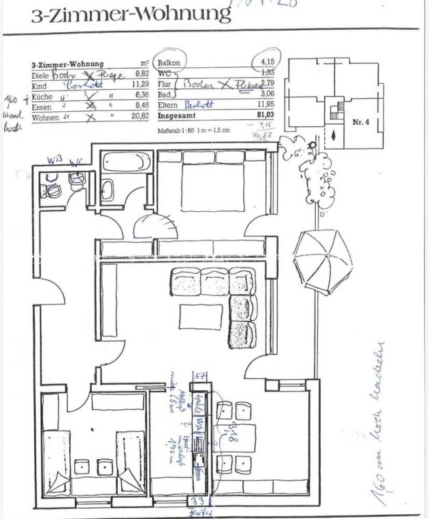 - 3,5 Zimmer, Küche, Diele, Bad, Balkon