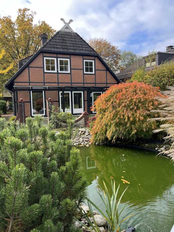 • Liebevoll angelegter Garten mit Teich, ideal für Hobby-Gärtner (Pflege durch Mieter oder externen Helfer möglich).