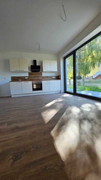 Auf ca. 53 m² Wohnfläche erwartet Sie ein offenes Wohnkonzept mit harmonischer Raumaufteilung: Der großzügige Wohn- und Essbereich mit bodentiefen Fenstern schafft eine helle Atmosphäre und verbindet den Innenbereich perfekt mit der angrenzenden Terrasse und dem Garten. Eine moderne Einbauküche ist bereits integriert. Das Badezimmer präsentiert sich hochwertig ausgestattet mit bodengleicher Dusche. Ein praktischer Abstellraum innerhalb der Wohnung sorgt für zusätzlichen Stauraum.