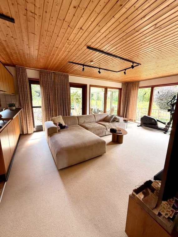Der Wintergarten mit Fußbodenheizung wurde 1997 umgebaut. 2020 sind neue 3-fach-verglaste Alufenster eingebaut worden. Auf der Süd- und Westseite mit Sonnenschutzglas. Die Dachfenster sind neu und haben elektr. Rollläden.