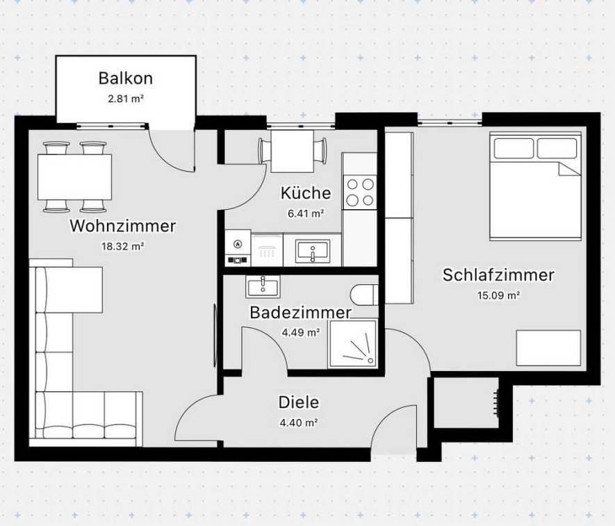 Die gemütliche 2-Zimmer-Wohnung mit 51 m² bietet alles, was man zum Wohlfühlen braucht.