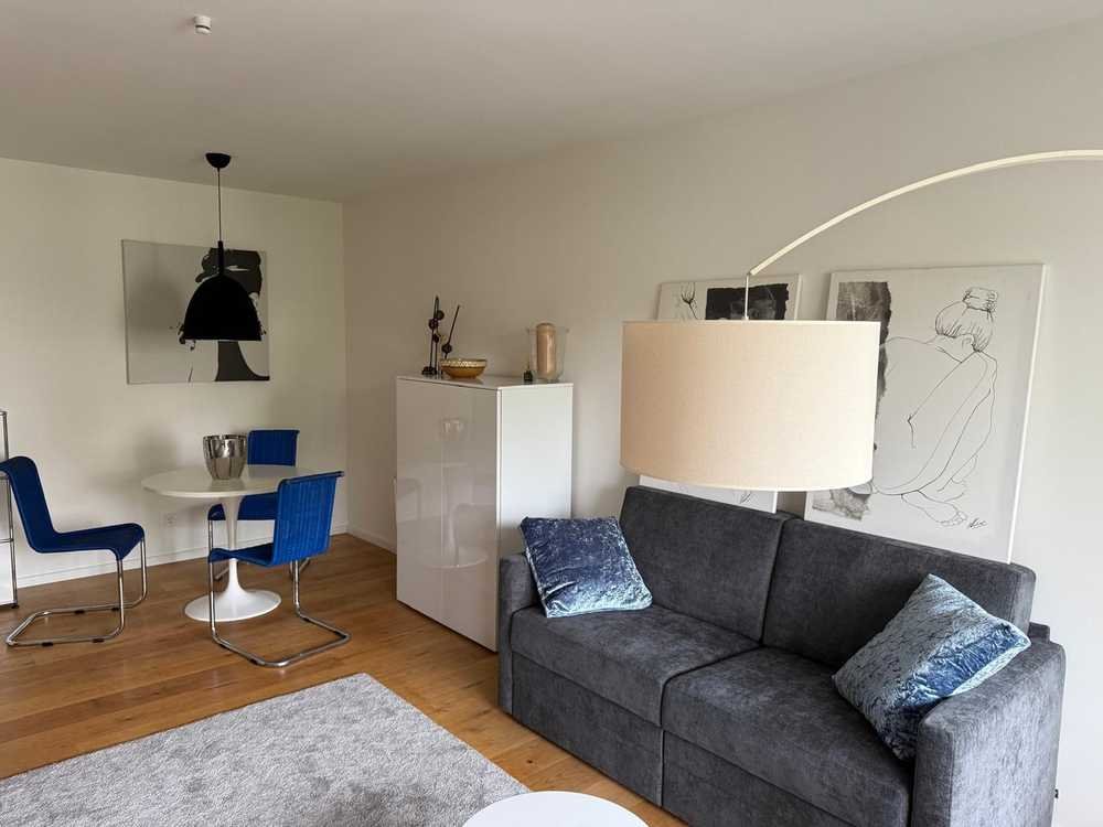 2 Zimmer Wohnung, möbliert, inkl. Küche mit Spülmaschine, Wohnzimmer mit Sofa/ TV / Radio / Esstisch rund 3 Stühle. Schlafzimmer mit Doppelbett und großen Schrank vorhanden, siehe auch Bilder. Boden Parkett, ausser Bad und Küche Fliesen. Fritzbox vorhanden. Die Wohnung ist für 1- max. 2 Personenhaushalt gedacht, ohne Haustier-e, Balkon mit 2 Stühlen und Beistelltisch bestückt, Mindestlaufzeit 12 Monate