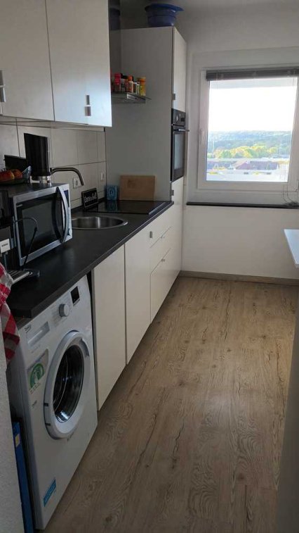 Diese Wohnung ist 2018 innen komplett saniert worden. Die ganze Wohnung ist mit Rauhfaser tapeziert. Malerarbeiten bei Einzug ist Mietersache. Es wurden 2018 neue weiße Türen eingebaut. Das Bad ist nigel-nagel-neu von 2018. Es gibt neue Objekte in weiß und die Armaturen sind von Grohe.