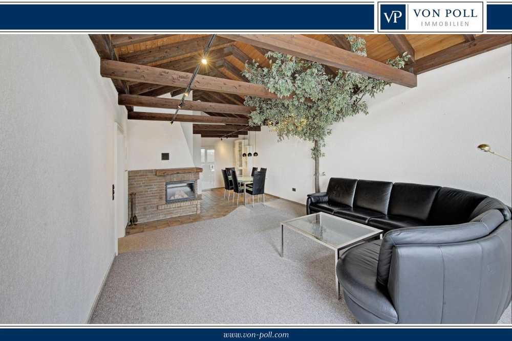 Das Herzstück bildet der weitläufige Wohn- und Essbereich mit gemütlichem Kamin, der eine besondere Wohlfühlatmosphäre schafft. Von hier aus gelangen Sie auf den Balkon, der zum Entspannen und Genießen der Aussicht einlädt. Dank der erhöhten Lage genießen Sie hier absolute Privatsphäre – ungestört und ohne Einblicke von außen.