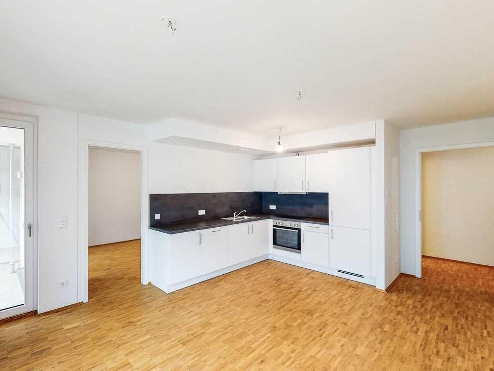 In dieser 2 Zimmer Wohnung finden Paare und anspruchsvolle Singles ein schickes Zuhause. Die smarte Grundrisslösung schafft ebenso Platz zum Ankommen und Abschalten, Gemeinsamkeit und Rückzug wie Raum zur individuellen Gestaltung. Einladend präsentiert sich das Wohnzimmer, mit Zugang zur Loggia, als Herzstück der 2-Zimmer-Wohnung. Offen gestaltet mit Koch- und Essbereich bietet es Zugang zum gemütlichen Schlafzimmer mit separatem Ankleidezimmer. Eine Diele mit Abstellmöglichkeit und ein Duschbad machen das Raumangebot komplett.
