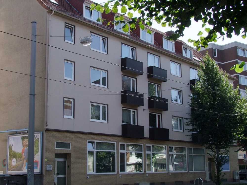 Die Wohnung befindet sich in der Nähe der kleinen Weser in einem Mehrfamilienhaus.