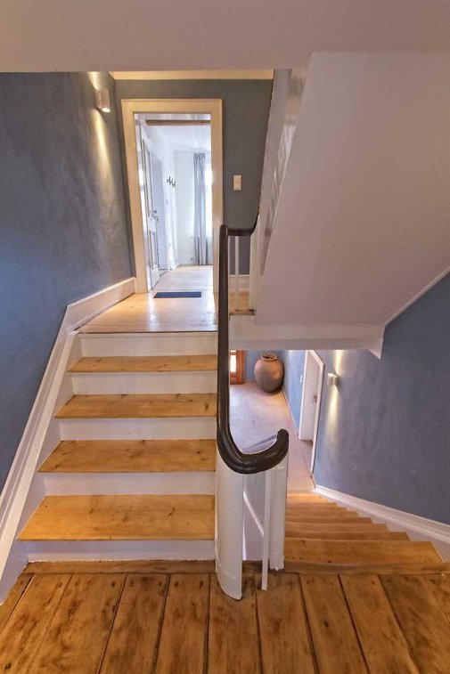 Die Wohnung befindet sich in der ersten Etage eines Fachwerkhauses.