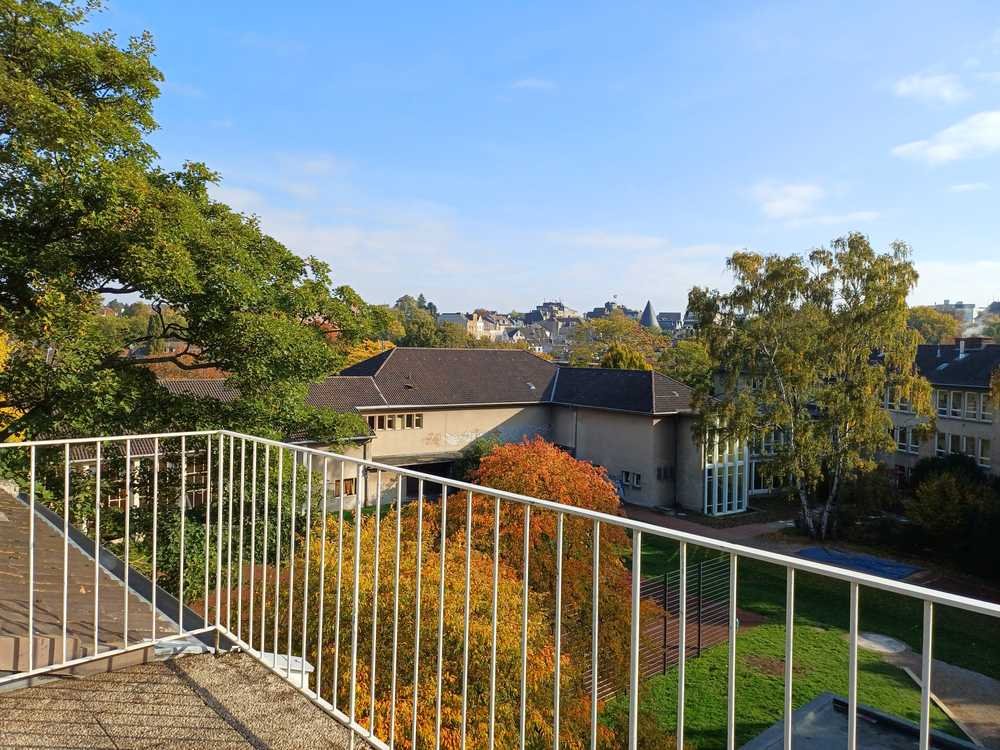 Die komplett neu renovierte Wohnung befindet sich im 3. Geschoss (Dachgeschosswohnung) und wird bis Ende Oktober fertig gestellt sein. Helle, lichtdurchflutete Räume kennzeichnen die Wohnung aus. Der Balkon zeigt ins Grüne und von dort, von Küche und Wohnzimmer hat man einen wunderschönen Blick auf den Abteiberg. Zu Wohn-, Schlaf- und Arbeitszimmer gehören noch Diele, Bad und Küche. An verschiedenen Stellen befindet sich eine leichte Schräge (eingezeichnet im Grundriss).
