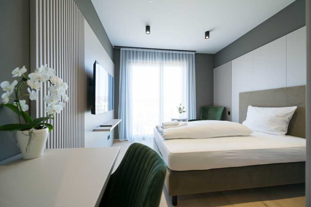 A modern kitchenette, cosy box-spring beds and all basic furnishings - from crockery to bed linen - are included. Washing and drying facilities, bicycle parking spaces and an optional cleaning and laundry service offer additional convenience. Parking spaces outside or in the underground car park are also available as an option.