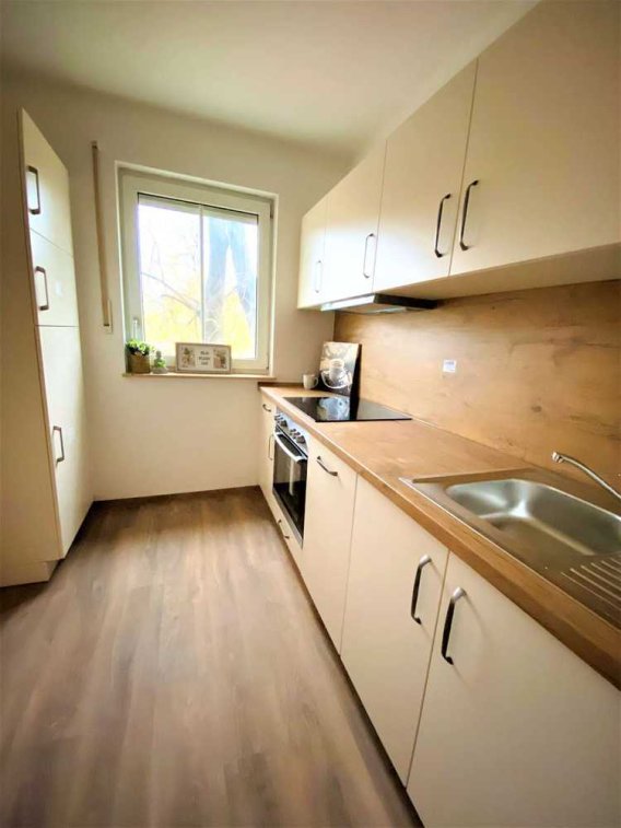 Stötteritz: Tageslichtbad mit Dusche I Küche mit Einbauküche