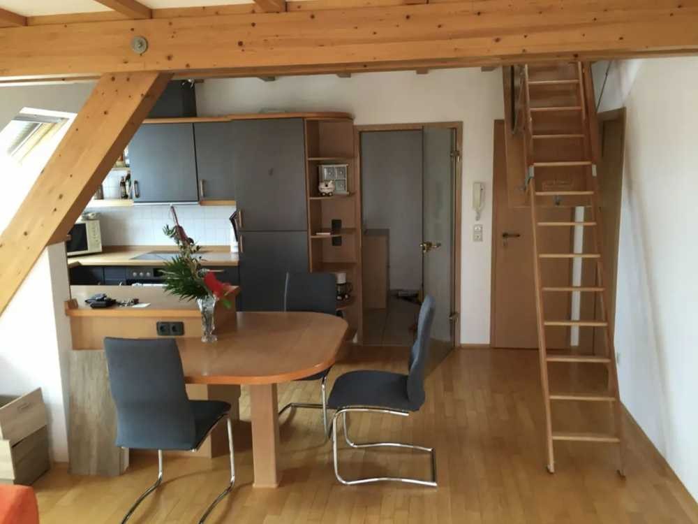 Sehr schöne, gepflegte DG-Wohnung in Zweiparteienhaus mit eigenem Eingang, herrlicher Blick in die Rheinebene, gehobene Innenausstattung, Einbauküche, offener Küchen-, Ess-, Wohnbereich + 3 Zimmer, Bad, Balkon, Abstellraum und Kellerraum; ruhig gelegen. Die Einbauküche wird mit vermietet und ist bereits im Mietpreis enthalten.