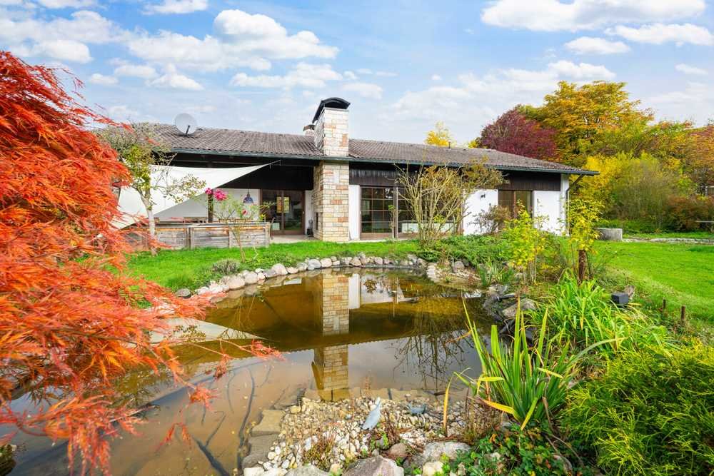 Das Anwesen begeistert durch seine weitläufige Gartenanlage mit altem Baumbestand, einem idyllischen Teich sowie einem großen Gartenhaus, das zusätzliche Nutzungsmöglichkeiten bietet. Die Garage ist mit einem Starkstromanschluss für Elektrofahrzeuge ausgestattet – ein echtes Plus für zukunftsorientierte Bewohner.