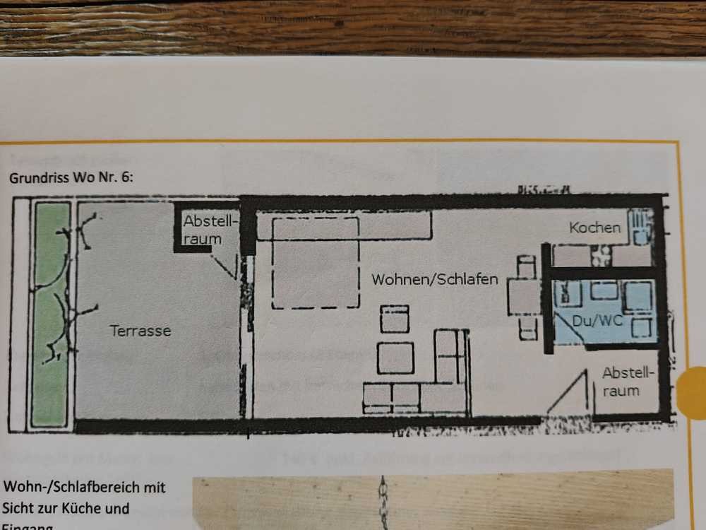 Ein separater Küchenraum (ohne Einbauküche) sowie ein Duschbad sind ebenfalls vorhanden.