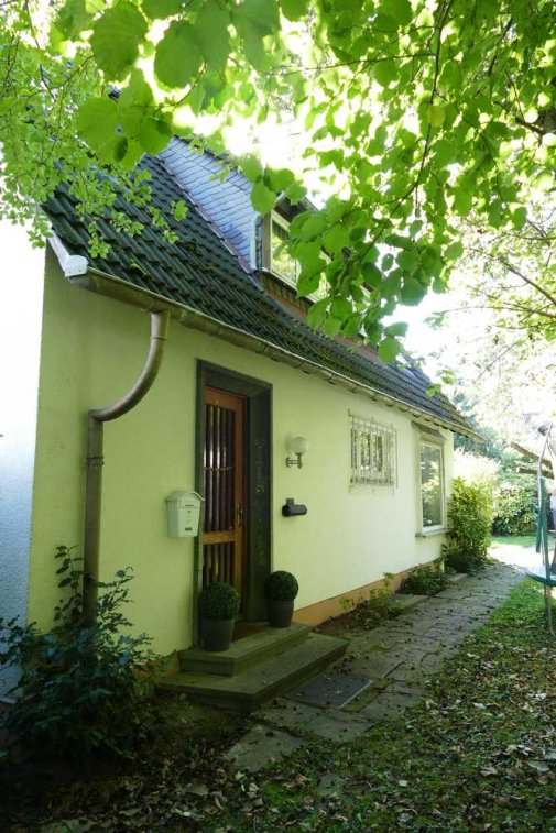 eingewachsenes Grundstück mit großer Natursteinsüdterasse und Gartenhäuschen, Südbalkon, vier Zimmer, großes Wohn-Esszimmer, zwei Bäder, davon eines rollstuhlgerecht,