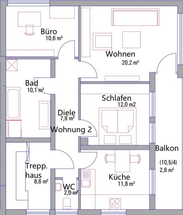 Zum Objekt gehört auch ein südseitiger Balkon, auf dem es sich wunderbar vom Alltag erholen lässt.