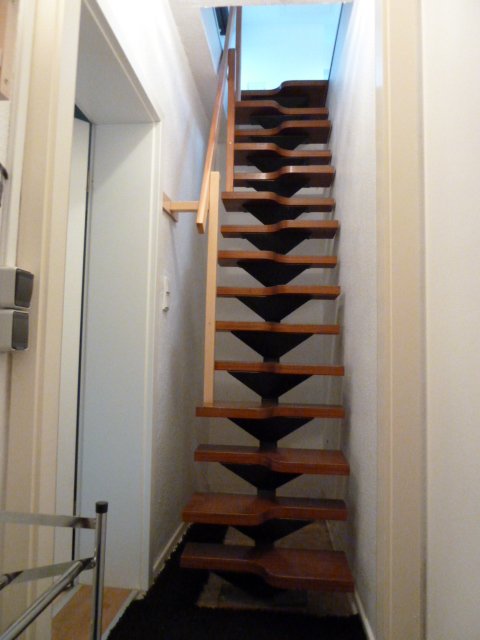 Es gibt einen gesonderten Eingangs-/Garderobenbereich und zusätzlich 2 abgetrennte Stauplätze in der Dachschräge.