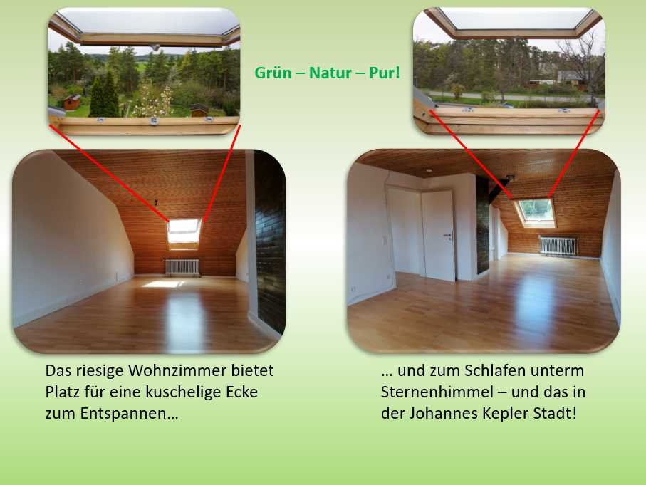 wir (5-köpfige Familie) vermieten eine schöne 2-Raum DG-Wohnung in der Nähe des Johannes-Kepler-Gymnasiums in Weil der Stadt in unserer Doppelhaushälfte. Wir wohnen im UG und 1. OG.