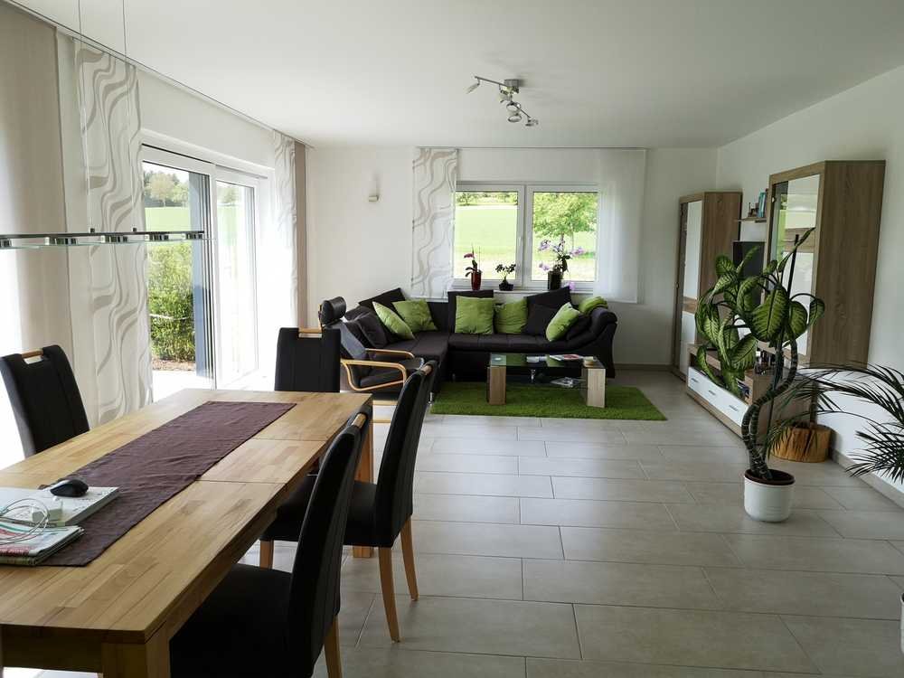 Die Wohnung ist mit einer Fußbodenheizung ausgestattet. Für die Energieversorgung sorgt eine effiziente Luft-Wärmepumpe, die von einer solarthermischen Anlage zur Erwärmung des Trinkwassers und der Heizung kosteneffizient und umweltschonend unterstützt wird (niedrige Heizkosten). Die Fenster besitzen eine Dreifachverglasung. Die Rollläden werden elektrisch bedient. Das Bad ist u.a. mit einer begehbaren Dusche (ebenerdig), Badewanne, einem Doppelwaschtisch und einem Spiegelschrank ausgestattet. Die Küche ist mit einer sehr modernen Einbauküche mit mittigem Kochfeld eingerichtet. Die Küche bietet Platz für eine Essecke. Zur Wohnung gehört auch ein Garagenstellplatz in einer Doppelgarage. Die Garage wird separat mit 50,- € mtl. berechnet. Ein weiterer Stellplatz befindet sich auf Höhe des Hauseingangs. Die Wohnung besitzt ein Gäste-WC. Die Wohnräume sind mit großformatigen Fliesen ausgestattet; die Schlafzimmer mit modernen Laminatböden. Im Wohnzimmer und den Schlafräumen bestehen SAT-, LAN und Telefonanschlussmöglichkeiten. Eine Speisekammer befindet sich direkt neben der Küche. Im Kellergeschoss steht ein Hauswirtschaftsraum mit Waschmaschinen- und Trockneranschluss zur gemeinsamen Nutzung zur Verfügung. Des Weiteren kann ein eigener Kellerraum als Abstellraum genutzt werden.