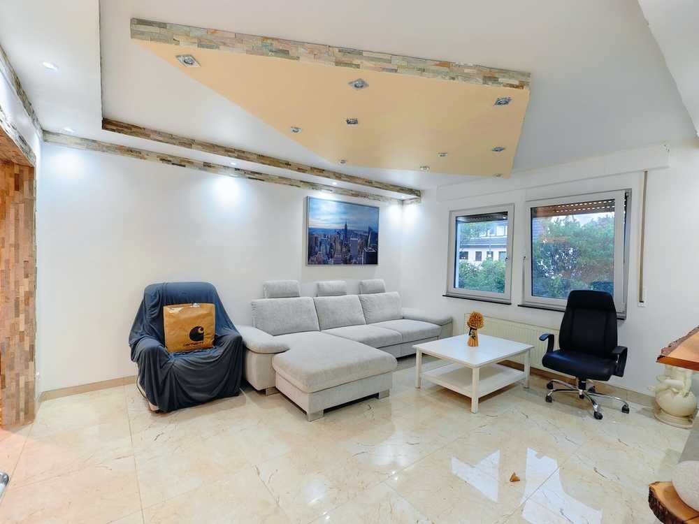 - ein großzügiges, helles Wohnzimmer mit hochwertige 3er-Sofa
