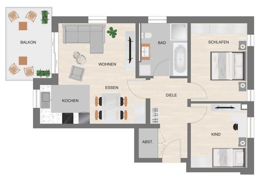 Die Wohnung verfügt über drei schöne Zimmer. Die Morgensonne können Sie in den nach Osten ausgerichteten Schlafzimmern genießen und sorgt so für einen schönen und entspannten Start in ihren Tag.