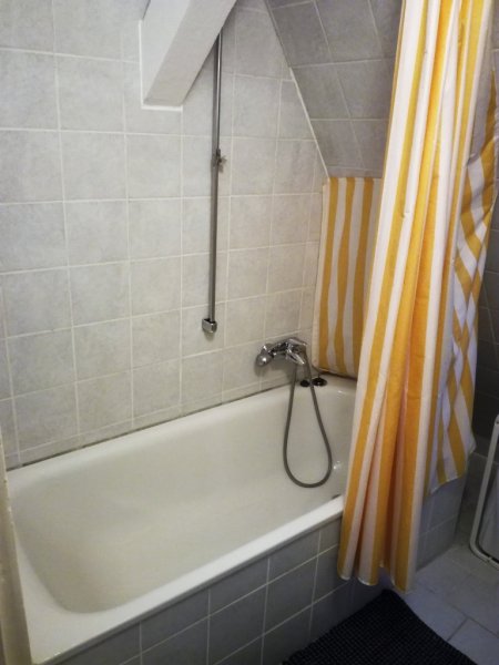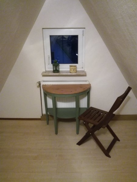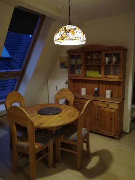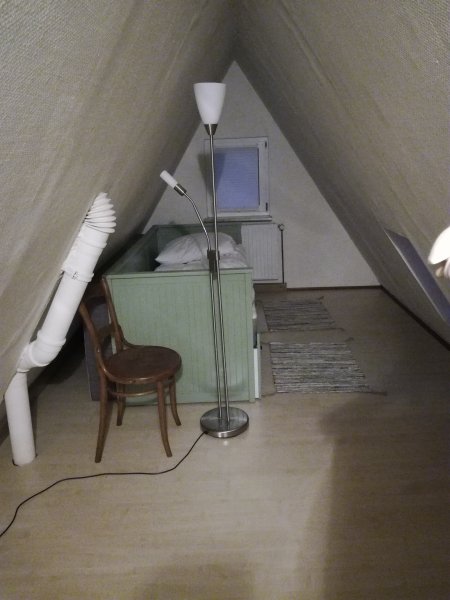 Liebevoll komplett möblierte Wohnung mit 2 Zi auf zwei Ebenen im DG eines MFH mit Café im EG enthalten. Badezimmer mit Badewanne und Waschmaschine , Böden im Wohnber.: Laminat, sonst Fliesen. Gesamte ausgewiesene Wohnfläche ca. 55m².