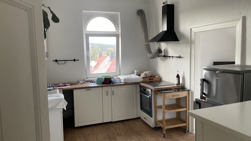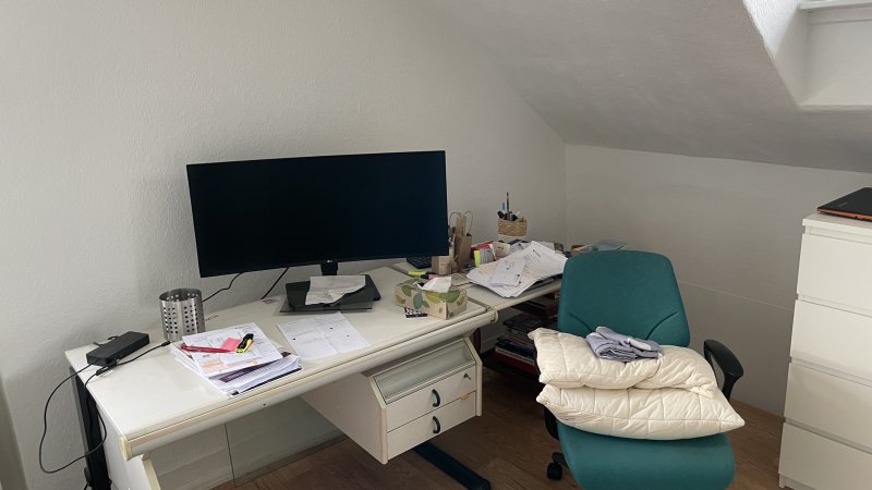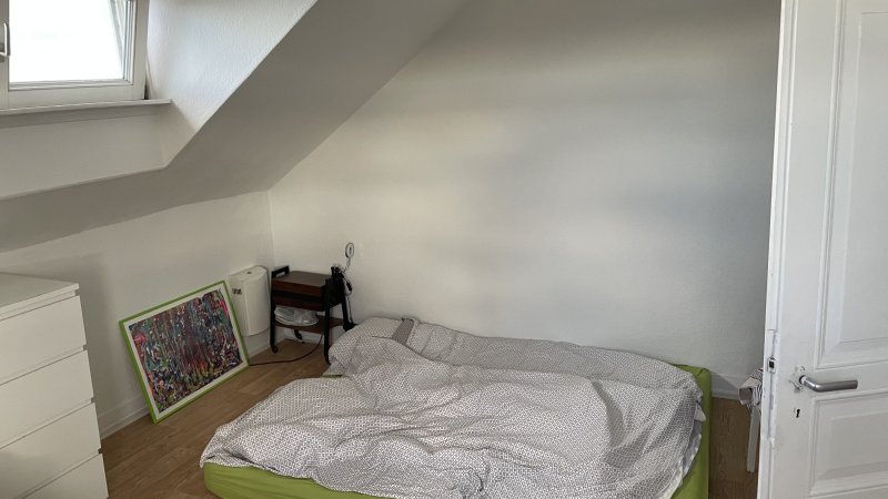 Die Wohnung ist im DG des Hauses. Sie bietet ein geräumiges Bad mit Badewanne und Waschmaschine. Die Küche ist voll ausgestattet mit Herd, Kühlschrank und Spülmaschine. Auch ein Bett und Schreibtisch ist mit drin. Die Wohnung ist 5Min von der S-Bahn und Bussen entfernt.