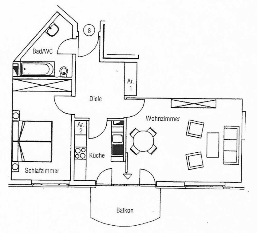 Die lichtdurchflutete 2-Zimmer-Wohnung liegt im 2.Obergeschoss eines Mehrfamilienhauses (Aufzug vorhanden).