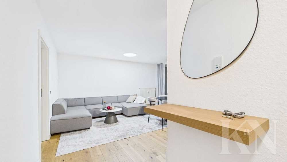 Der funktionale Grundriss ermöglicht eine klare Trennung zwischen Wohn-, Schlaf- und Essbereich. Das helle Wohnzimmer mit Zugang zum ersten Balkon lädt zum Entspannen ein, während auch das Schlafzimmer über einen eigenen Balkon mit Blick in den Innenhof verfügt. Die Küche steht zur Nutzung bereit und bietet ausreichend Platz für gemeinsame Kochmomente. Ein weiteres Zimmer kann flexibel als Kinderzimmer, Homeoffice oder Gästezimmer genutzt werden. Das Badezimmer und ein praktischer Flur runden das Raumangebot ab.