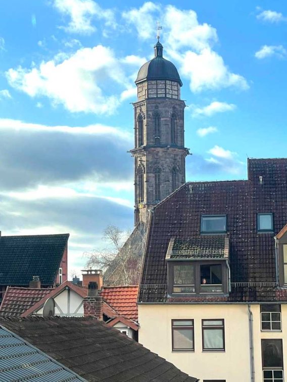 Die architektonisch reizvolle, barrierefreie und frisch renovierte Wohnung mit Aufzug und Loggia befindet sich in ruhiger und bester Lage in der Innenstadt, in einem Mehrfamilienhaus, welches vom Göttinger Stararchitekten Jochen Brandi entworfen wurde. Er verband das moderne Gebäude mit dem Turm der ehemaligen städtischen Feuerwache.