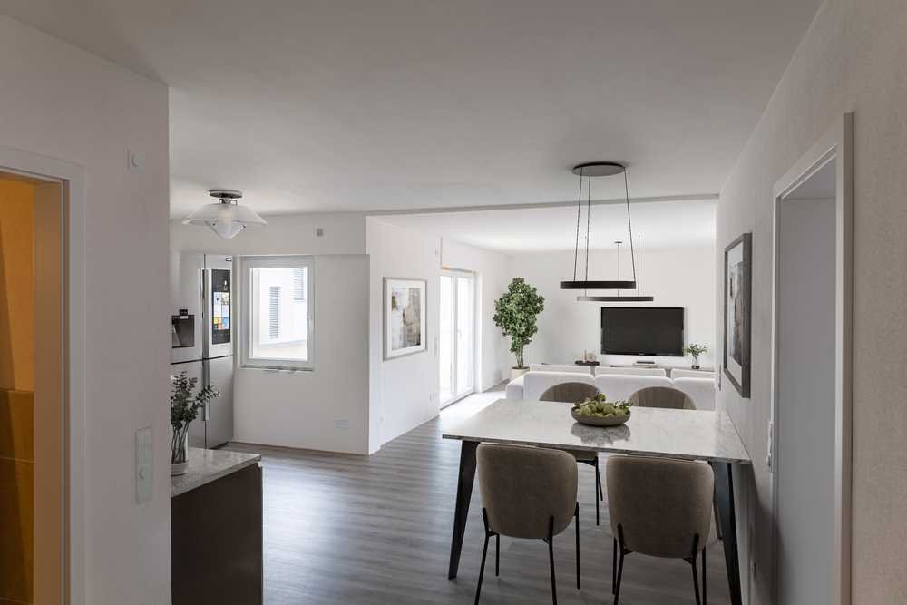 Neben dem offenen Wohnbereich verfügt die Wohnung über ein separates Schlafzimmer, das Ruhe und Rückzug ermöglicht. Ein modernes Tageslichtbad sowie eine sonnige Terrasse runden das Angebot ab.