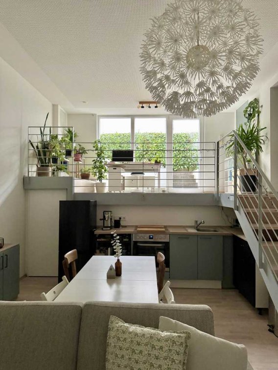 Diese außergewöhnliche Loftwohnung bietet modernes Wohnen auf zwei Ebenen – hell und individuell gestaltet.