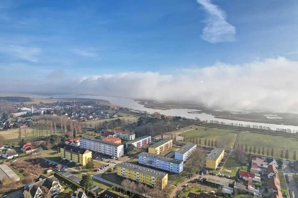 Die farbenfrohe Wohnanlage "To Huus" besteht aus sieben Geschosswohnungsbauten mit gepflegten Außenanlagen, gemeinschaftlichen Frei- und Spielflächen, sowie Stellplätzen für PKWs und Fahrräder. Die soliden Neubauten mit schlichter Fassade wurden 1969 bis 1975 erbaut und in den 2000er Jahren energetisch modernisiert. Die angebotene Immobilie liegt im 1. OG und wurde komplett renoviert. In der Wohnung stehen Ihnen zwei Zimmer, eine Küche, ein Duschbad und ein Flur zur freien Entfaltung zur Verfügung. Der Balkon mit einem herrlichen Blick auf den Bodden lädt zum Entspannen ein
