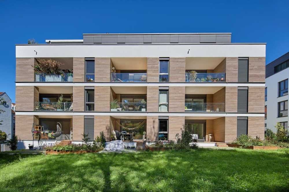 dem im Süden angrenzenden, parkartigen „Kirchgraben“ in Tübingen-Lustnau. Alle Wohnungen sind über