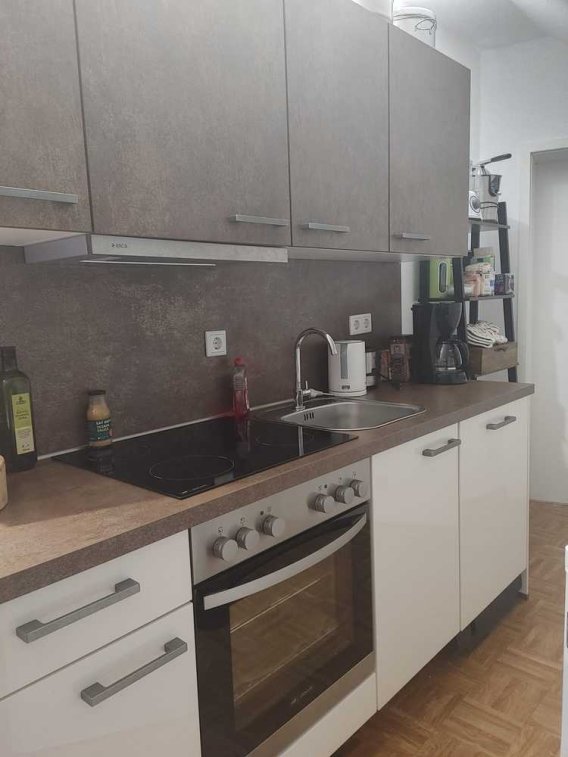 Das Wohn-/Schlafzimmer besticht durch eine lange Fensterfront, die viel Tageslicht hereinlässt, und ist mit elektrischen Fensterläden ausgestattet, die Komfort und Privatsphäre bieten. Alle Zimmer verfügen bereits über angeschlossene Leuchtmittel – Spots in der Küche, Lampen im Badezimmer sowie im Wohn- und Schlafbereich – sodass ein sofortiger Einzug ohne zusätzlichen Installationsaufwand möglich ist.