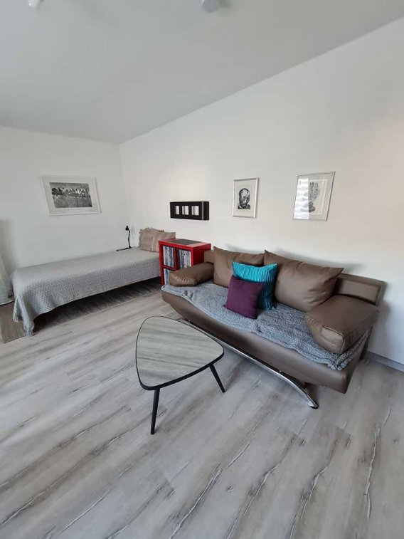 Helle, möblierte 1-Zimmerwohnung mit Küche und Gemeinschaftsgarten