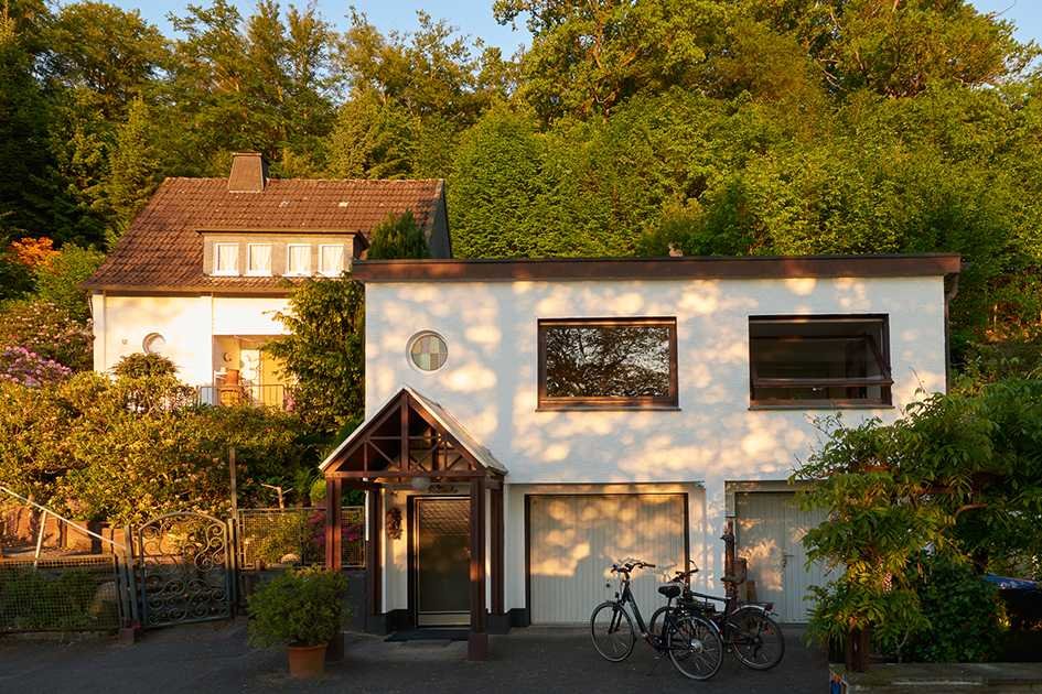 Die Wohnung besteht aus einer offenen Küche zum Wohnzimmer, sowie ein Schlafzimmer. Ein großes Bad mit Dusche und Wanne, sowie ein separates WC runden die Wohnung ab. Ein aktueller Energieausweis liegt vor. Der Balkon / Terrasse lädt zum Entspannen und Sonne tanken ein. Von der Terrasse geht es über eine alte Treppe direkt in den Wald. Durch den zur Wohnung gehörenden Auto-Stellplatz gehört die lange Suche nach einem Parkplatz der Vergangenheit an. Über die kleine Terrasse ist die gemeinsame Waschküche zu erreichen. Hier ist Platz für eine Waschmaschine und einen Trockner. Die Wohnung im OG (über der Garage) ist über eine Flurtreppe mit 14 Stufen zu erreichen. Die Waschküche über den Hinterausgang ist ebenfalls über weitere 8 Stufen zu erreichen. Die Wohnung ist somit nicht Behindertengerecht ausgestattet.