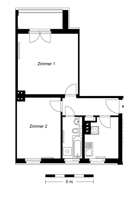 Sie liegt in der 4. und damit obersten Etage und verfügt über 2 Zimmer, Küche, Bad, Flur und Balkon mit insgesamt ca. 53 m2 und wird komplett möbliert angeboten.