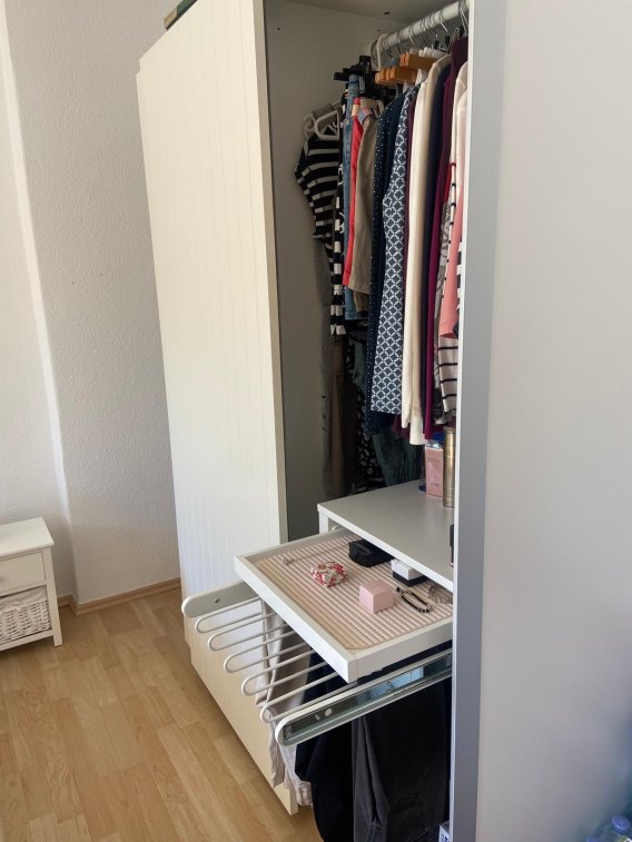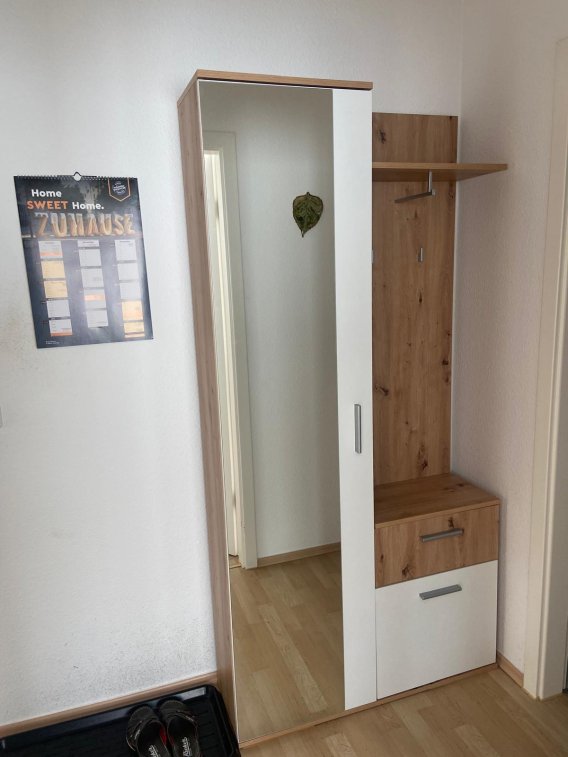 Die Einbauküche und auch andere Möbel, wie Sideboard, Schrank, Garderobe, Bett(ohne Matratzen), Badmöbel, können nach Bedarf vom jetzigen Mieter übernommen werden!