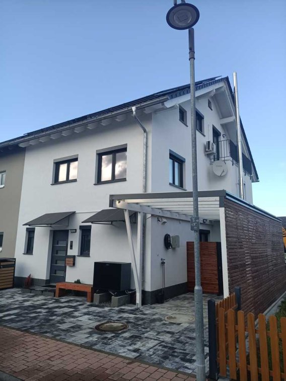 Ab sofort zu vermieten ist eine neugebaute, großzügige Doppelhaushälfte in Massivbauweise. Das Architektenhaus hat über 3 Etagen eine Wohnfläche von 175m² und 251 m² Grundstücksfläche Das Haus verfügt über 5,5 Zimmer, 2 Badezimmer inkl. hochwertiger Badmöbel und Gäste-WC. Das Gebäude ist sehr hochwertig ausgestattet, alle Räume sind gefliest und haben Fußbodenheizung.