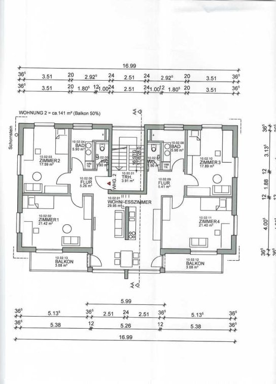 Diese helle 5-Zimmer Wohnung mit 140,68 m² Wohnfläche bietet viel Platz und Komfort. Ein besonderes Highlight sind 2 Balkone, die zum Entspannen einladen. Beide Balkone befinden sich auf der Südseite des Hauses und können vom Zimmer aus und vom Wohn/Esszimmer, Küchenbereich aus, betreten werden. Die Wohnung hat bodentiefe zweiflügliche Fenster. Die Fenster sind dreifach verglast. Der rechte und der linke Teil der Wohnung ist spiegelverkehrt angelegt und hat einen jeweilig zugehörigen Zugang. Ein Zimmer der Hälfte besteht aus einem kleineren und aus einem größeren Zimmer und über jeweils ein Bad mit Dusche und einem separaten WC. zwischen den zwei Wohnungshälften liegt der Wohn/Esszimmer und Küchenbereich. Eine Einbauküche ist vorhanden. Die Wohnung ist komplett gefliest. Zur Wohnung gehören zwei Kellerabteile und zwei Autoparkplätze. Die Mietpreis stellt eine Warmmiete dar, das heißt, die Heizung ist inkludiert. Die Wohnung wird ab dem 01.01.2026 verfügbar sein und eignet sich auch gut für Wohngemeinschaften.