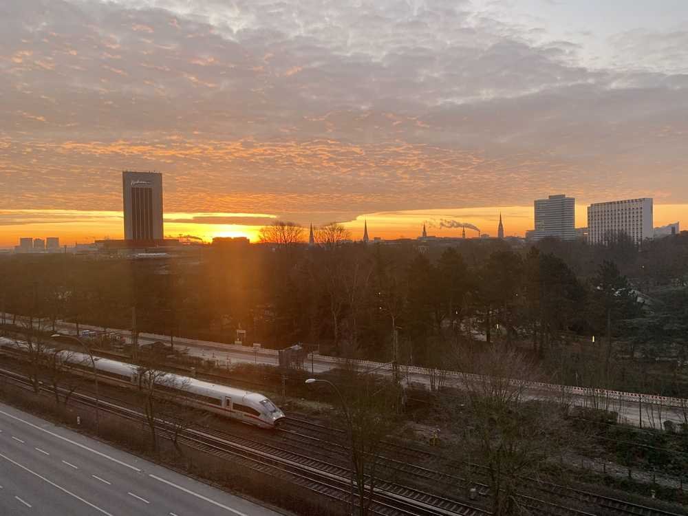 Sie haben zukünftig den tollen, täglichen Blick von der schönen überdachten Terrasse oder aus dem Innenraum der Zimmer über die großartige Stadt Hamburg.