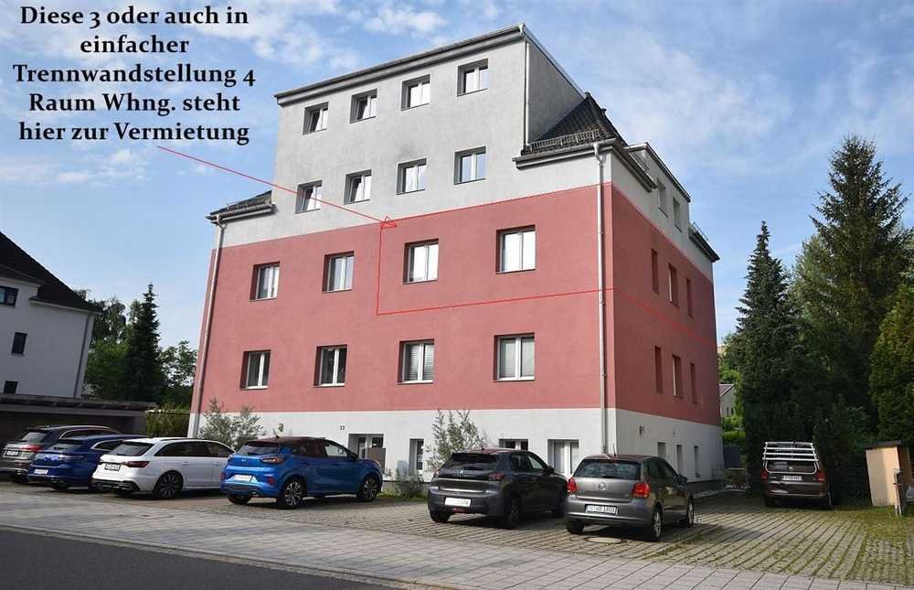 Diese aktuell als 3-Raum ausgebildete Wohnung könnte durch einfachen Trennwandeinbau (siehe rote Einzeichnung im Grundriss) auch zu einer 4-Raum, wie ursprünglich gedacht, umgebaut werden. Damit würde ein etwas kleineres Kinderzimmern (ca. 7,6 m²) entstehen. Im Rahmen einer hochwertigen Modernisierung entstanden tolle Wohnungen.